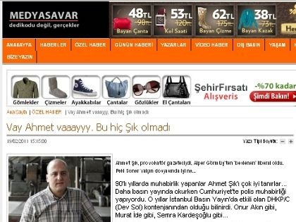 “Vay Ahmet vaaayyy bu hiç şık olmadı” başlıklı yazının yer aldığı Medyasavar.com adlı internet sitesi, hem alan adı değişikliği yapmış, hem de sözkonusu haberi arşivinden kaldırmış görünüyor. Sözkonusu yazının yayınlandığı 19 Şubat 2011 tarihinde Medyasavar.com adresinden yayın yapan site, yayınını şu anda Medyasavar.net adresinden sürdürüyor. Aynı tarihte http://medyasavar.com/ozel_haber/10400-Vay-Ahmet-vaaayyy-olmad.html   adresinde bulunan heber, bugün sitenin adres değişikliği nedeniyle http://medyasavar.net/ozel_haber/10400-Vay-Ahmet-vaaayyy-olmad.html adresinde yer alması gerekirken yayından kaldırılmış görünüyor. Ancak aynı sitede yer alan 24 Şubat 2011 tarihli Soner Yalçın, Sabri Uzun, Nedim Şener, Ahmet Şık. Simon'dan daha büyük ses getirecek kitap…” başlıklı haberde sözkonusu habere verilen linkler halen görünüyor.