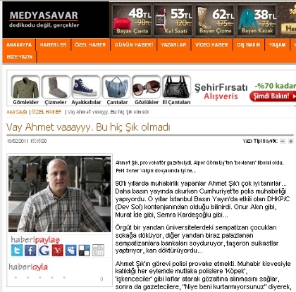 Ahmet Şık hakkında “Provokatör ve örgüt üyesi” gibi iddiaların yer aldığı Medyasavar adlı internet sitesinin künye bölümünde Genel Yayın Yönetmeni olarak Abdullah Küçükaytekin adı görünüyor. Haber ve öneriler için bir elektronik posta adresinin yer aldığı sitede reklam vermek için de bir mobil telefon numarası bulunuyor. Sitenin yönetim yeriyle ilgili başka herhangi bir adres ve telefon numarası da yer almıyor. Şık, sitedeki mobil telefonu arayarak sitenin yayın yönetmeni olarak görünen Abdullah Küçükaytekin’le yaptığı görüşmeyi şöyle aktarıyor: