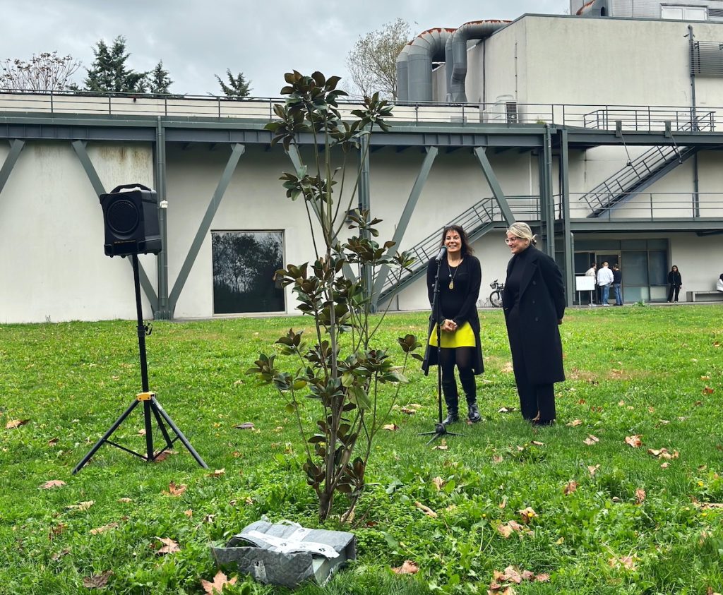 Bilgi İletişim Fakültesi Dkanı Itır Erhart ve Roots & Shoots Türkiye Başkanı Aslıhan Niksarlı Goodall’ın diktiği manolya fidanı başında birer kısa konuşma gerçekleştirdi.