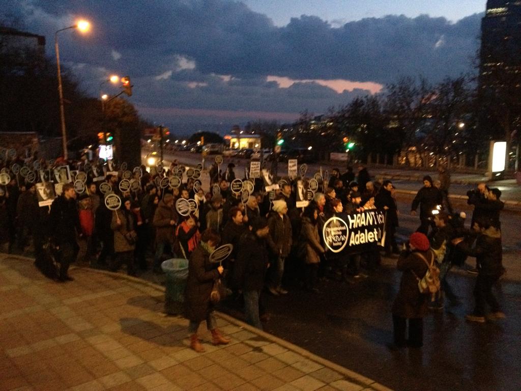 Asli faillerin bulunarak cezalandırılmasını isteyen ve başından beri duruşmaları izleyen kalabalık, Beşiktaş Adliyesi önünde tepkisini diye getirdi. Grup, kararın açıklanmasıyla Dink ailesine destek için Osmanbey'deki Agos Gazetesi'ne yürüyor.