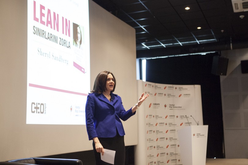 Sandberg, “Lean In: Sınırlarını Zorla – Kadınlar, İş ve Liderlik İsteği” adlı kitabını üzerine İstanbul Bilgi Üniversitesi öğrencilerine bir konferans verdi. Santralistanbul'da gerçekleştirilen konferans sonrasında HaberVs'nin sorularını yanıtlayan Sandberg, kadınların tüketim kararlarının yalnız ev içi ürünlerle sınırlı kalmadığına otomobil gibi her türlü satın alma kararında etkili olduğuna dikkat çekti. Yönetimde daha fazla sesinin duyulması için kadınların toplumsal ve duygusal bir dizi engeli aşması gerektiğini söyleyen Sandberg her zaman sistemin değişmesini beklemek yerine kişisel değişimi gerçekleştirmenin önemli olduğunu vurgulayarak kadınlara “Kalıplaşmış rollerin dışına çıkın” çağrısı yaptı.