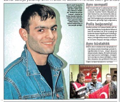 Radikal’in bugünkü (5.08.2008) nüshasında, Hrant Dink’in katil zanlısı Ogün Samast’ın İstanbul emniyetinde çekilmiş bir fotoğrafı yayınlandı. Samast, montunun yakalarını kaldırmış, en sevimli haliyle gülerek poz veriyor.
