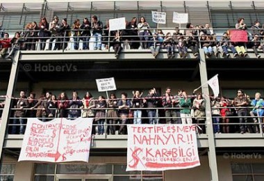 İstanbul Bilgi Üniversitesi öğrencileri, mezunları ve öğretim elemanları, geçtiğimiz hafta üç akademisyenin “görevi kötüye kullandıkları” gerekçesi ile işten çıkarılmasını protesto etti. Santral yerleşkesindeki eylem katılımcıların saat 10:00’da, okulun “cami girişi” tabir edilen arka kapısında toplanmasıyla başladı. Üniversite yönetiminin 9 Ocak Pazar günü duyurduğu üzere, Bilgi kimlik kartı taşımayan kişiler üniversiteye sokulmadı. Bilgi mensubu olmayıp eyleme […]