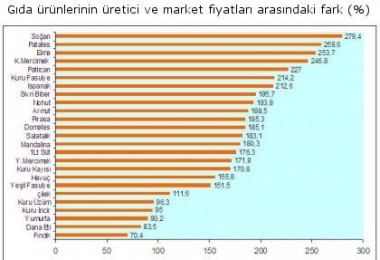 Türkiye Ziraat Odaları Birliği’nin gerçekleştirdiği araştırmaya göre üreticiden tüketiciye ulaşan gıda maddelerinin üretici-perakende satış fiyatı arasındaki fark yüzde 70’le yüzde 279 arasında değişiyor. Üretici ile tüketici arasındaki zincirde bazı ürünlerin fiyatı 4 kata varan oranlarda artıyor. TZOB’un raporuna göre üretici çıkış fiyatı ile market fiyatı arasında en büyük fark soğanda. Soğan üreticisinin eline kilogram başına […]
