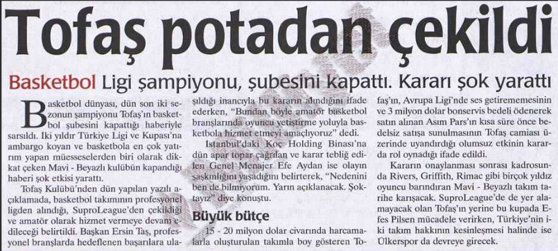 Basketbol denince Türkiye’de akla gelen ilk kulüpler arasında bugün Anadolu Efes, Fenerbahçe ya da Galatasaray yer alsa da; 1970’ler ve 1980’lerde bu alanın öncülerinden biri Eczacıbaşı’ydı. Kurumların desteklediği kulüpler, özellikle 1980’ler ve 90’larda Türk basketbolunun gelişiminde önemli rol oynadı. Bu dönemin son başarılı temsilcilerinden biri ise Banvitspor oldu. Kulüp takımları bu gelişmeler sonrası basketbolun popülerleşmesiyle bu alana daha ciddi yatırımlar yaparak öne çıkmaya başladı. İşte Tofaş da bu geçiş sürecinde yıldızı parlayan önemli müessese kulüplerindendi.