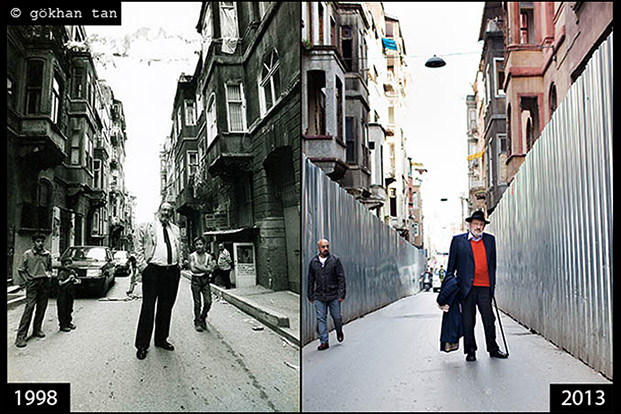 “Zaman” bizi tam da 15 yıl önce fotoğraf için buluştuğumuz noktada bir kentsel dönüşüm projesine denk getirdi. Eco da çekime gelirken projeden haberdardı ve anlaşıldığı kadarıyla, soruyu da bu nedenle, kendi uslubuyla yöneltmişti.