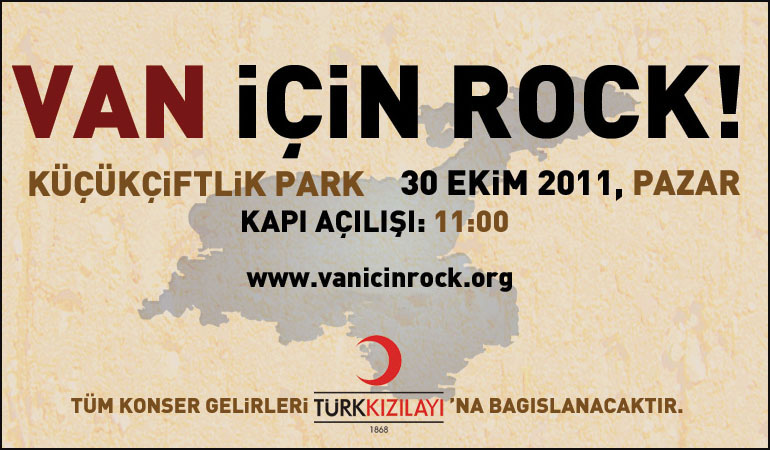 Deprem mağdurlarına destek için organize edilen Van İçin Rock konserinin satışa çıkan 12 bin 500 bileti tükendi. Organizasyona destek için bilet satışını karşılıksız gerçekleştiren firma, saat 18:00 itibarıyla biletlerin tükendiğini duyurdu. 30 Ekim 2011 Pazar günü İstanbul’da, Maçka Küçükçiftlik Parkı’nda gerçekleşecek konserde 40 rock grubu ve müzisyen sahne alacak.